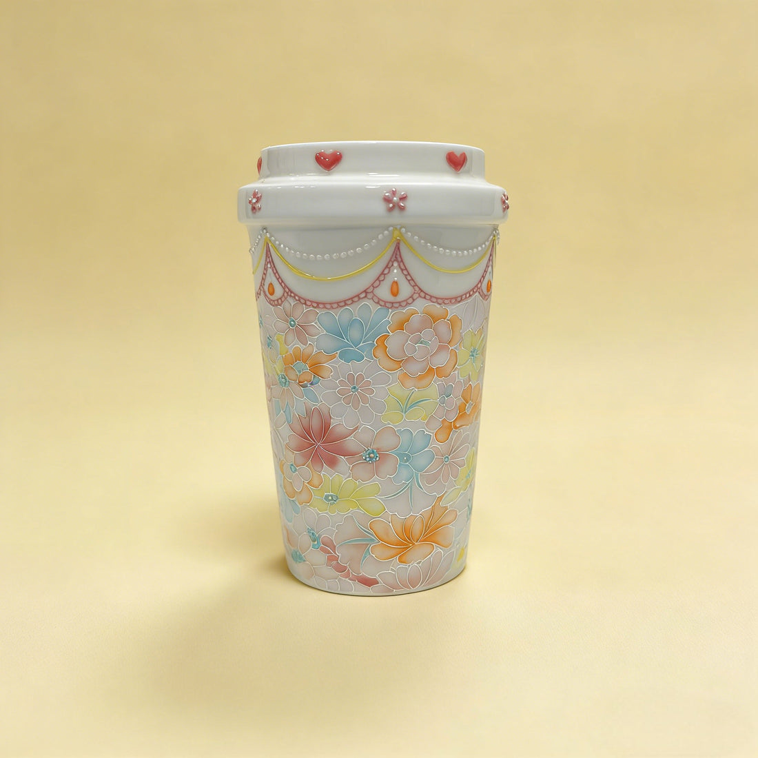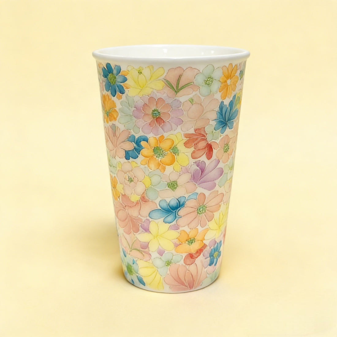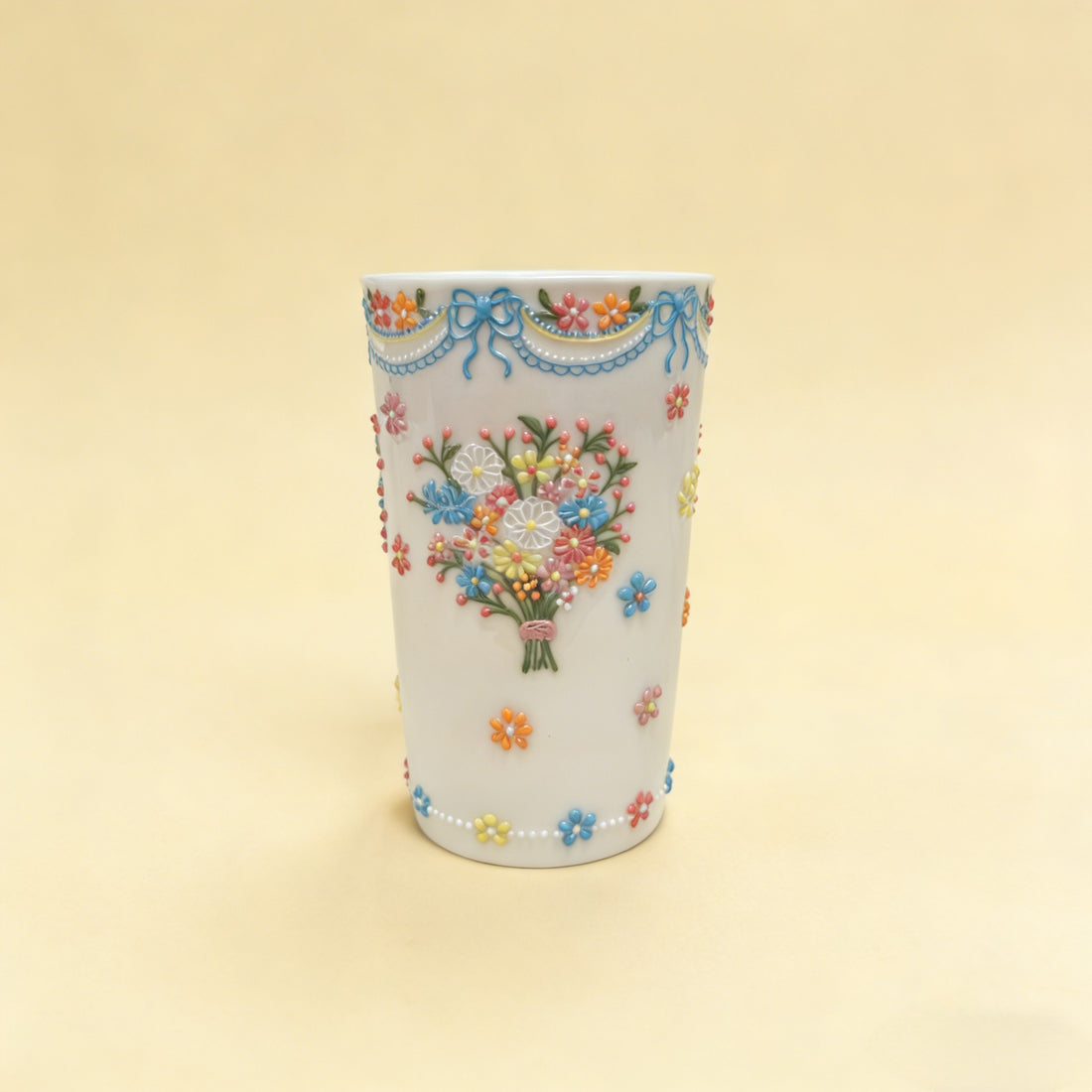 Handcrafted 3D Embossed Thousand Flower Porcelain Mug, Jingdezhen Artisan Floral Ceramic Cup - Style 04