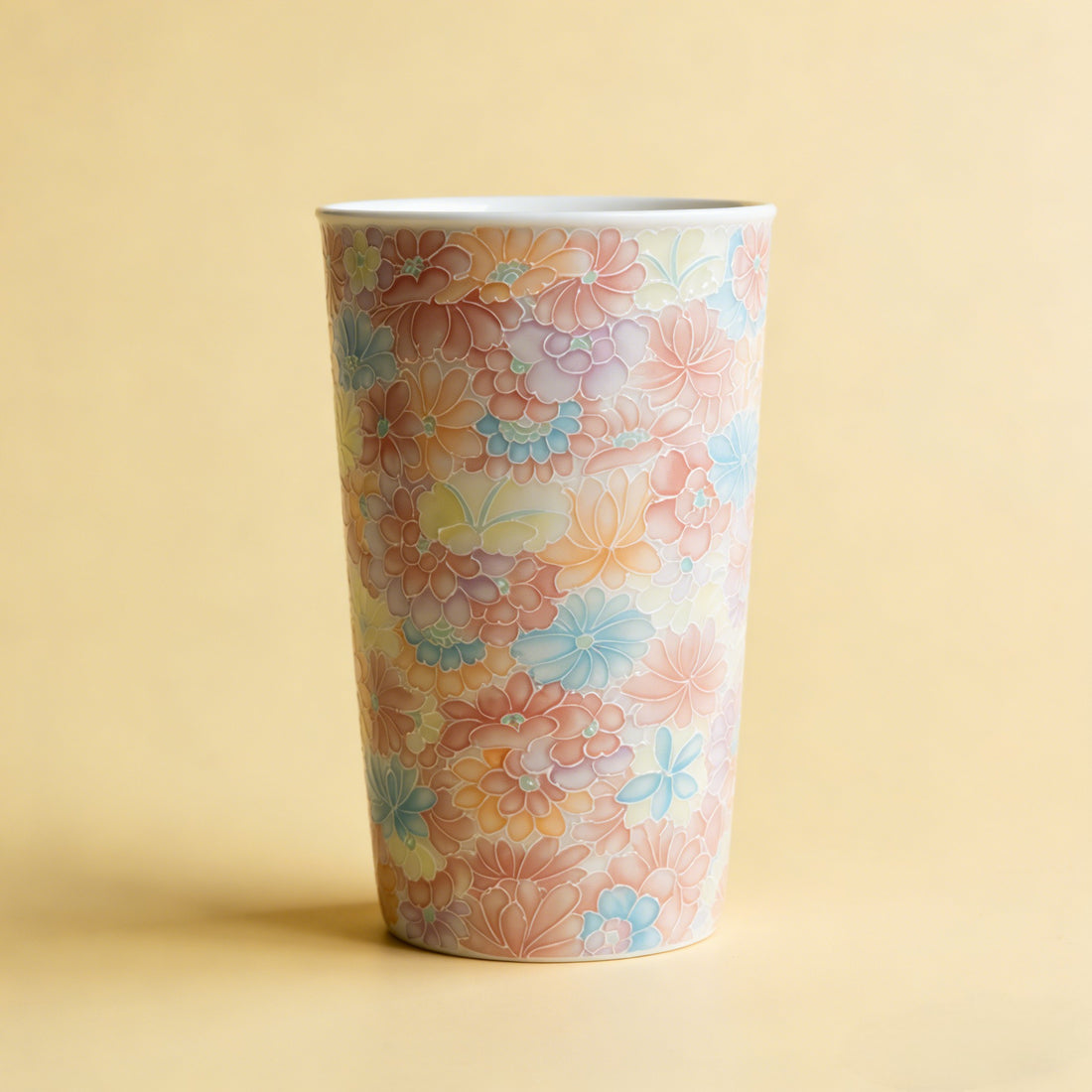 Handcrafted 3D Embossed Thousand Flower Porcelain Mug, Jingdezhen Artisan Floral Ceramic Cup - Style 03